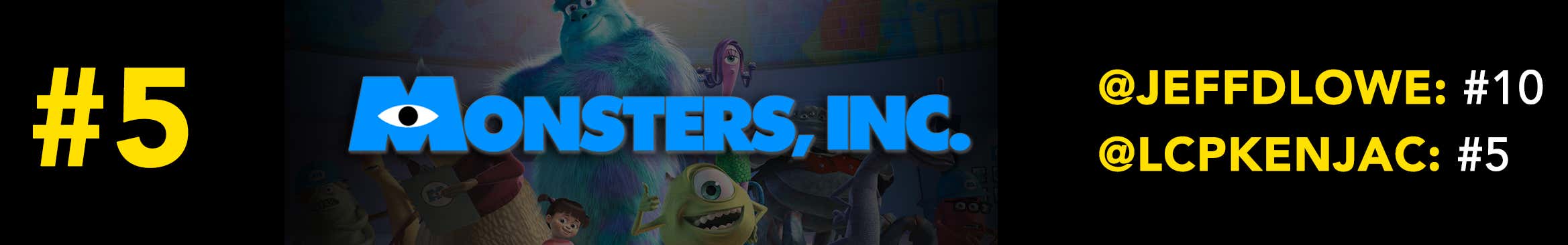 Jeff (His Rank: 10): ‘Monsters, Inc.’ always feels like the most forgotten top Pixar movie. The best Pixar movies creatively play and tug on your imagination, especially from childhood, and ‘Monsters, Inc.’ nailed it. Very respectable Top 5 pick from the audience.