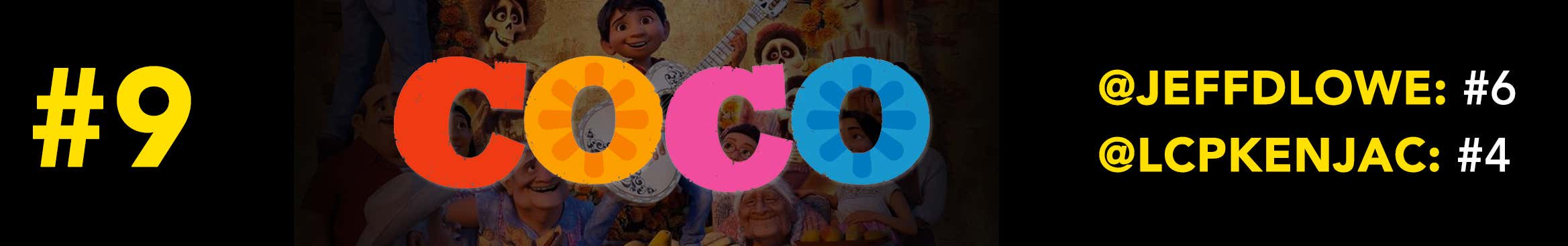 KenJac (His Rank: 4): This is probably (definitely) recency bias, but god damn did I love ‘Coco’. The musical performances were outrageously good and catchy and the storyline was so genuine. God damn you, Grandma Coco!
