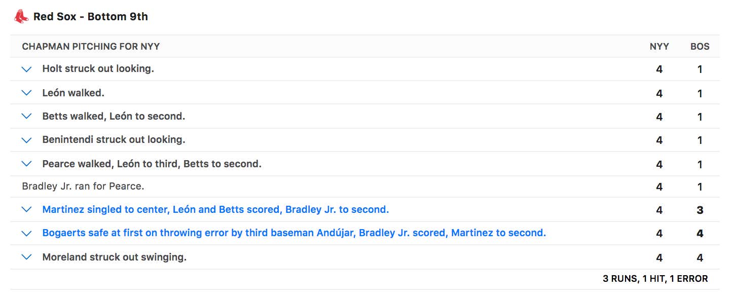 Awful. The moment this went to extras and Johnathan Holder came in, it was over. They didn’t have a chance. It was over. Even if they got out of that 10th, Sonny Gray was warming up for the 11th. Truly unbelievable. Going from a 4-1 commanding victory to life seemingly being over in a matter of minutes. I was drinking Jason Varitek’s wife’s tears for the better half of this game. It was great.
