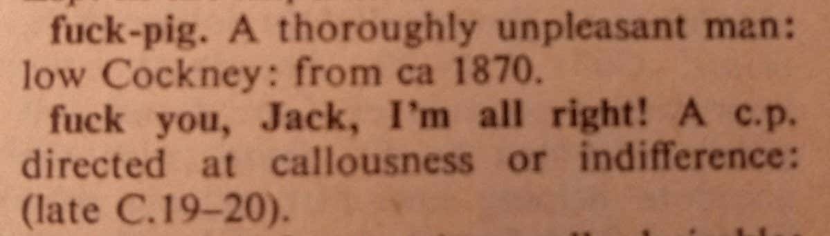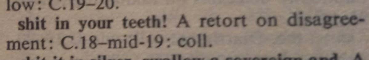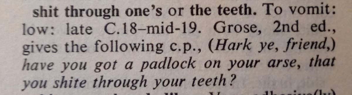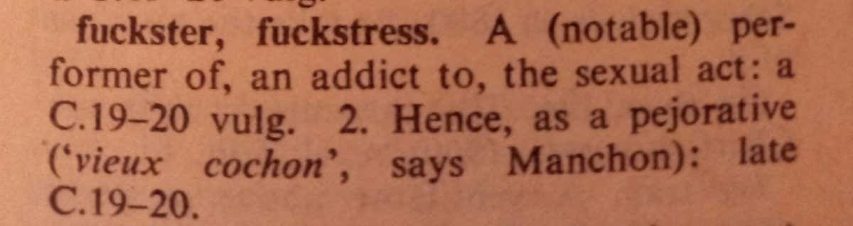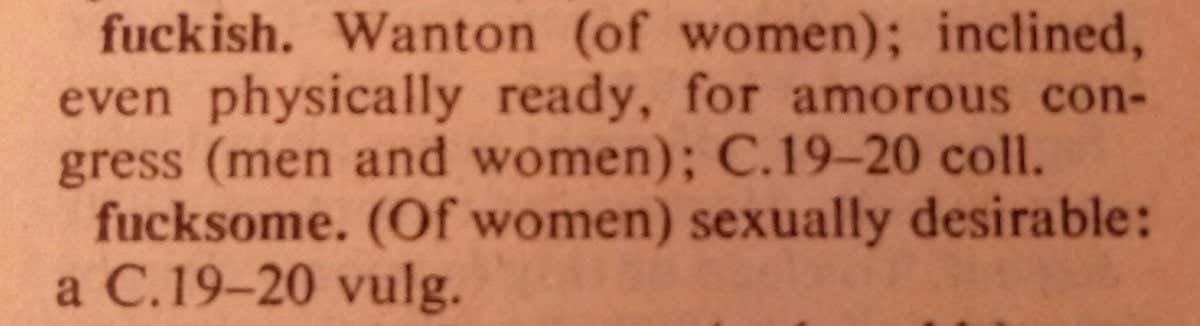 As a disclaimer: I’ll be using fuck-pig, shitten look, and shit through one’s teeth. Please note that I will be using these terms in only a historical sense and not as a means to insult another. If we don’t use language, we lose it. I’d be a fuck-beggar if I allowed that to happen on my watch.