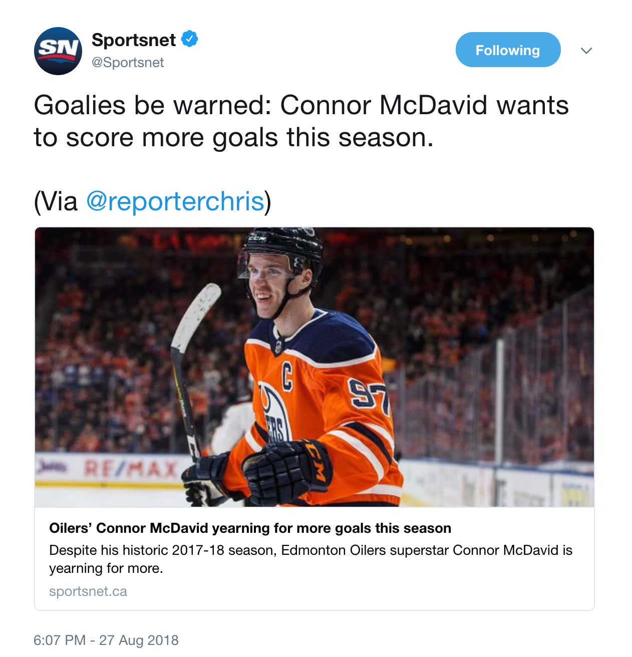This is where the Edmonton Oilers are really blasting everybody in the ass. Because the longer they suck, the better Connor McDavid is going to get. Kid had 41 goals and 108 points last season and those bags of shit still couldn’t even get into the playoffs. If the Oilers make the playoffs last year, that gives Connor McDavid 2 Art Ross Trophies and 2 Hart Trophies in his first 3 seasons in the league. Instead, his season ended in the beginning of April and he had to watch Tom fucking Wilson win a Stanley Cup. So what’s his only option? To get even bigger, even stronger, even faster, to just become the most dominant son of a bitch the world has ever seen. And it’s all Edmonton’s fault because if they were even a halfway competent organization, Connor McDavid’s 108 points would be enough to get them into the playoffs and he’d be perfectly content with where he’s at. He wouldn’t feel the need to get better, he’d just keep doing what he’s doing. But if 108 points isn’t going to cut it? Then I guess he has to get 150. And if that doesn’t do the trick? Then I guess he’ll just have to be the only person besides Gretzky to ever score 200 in a season. I hope you’re happy, Edmonton. Selfish pricks.