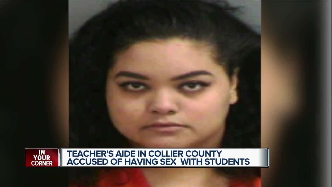 Florida – A teacher’s aide accused of having a swimming pool threesome with two 15-year-old students was arrested in Collier County, Fla.