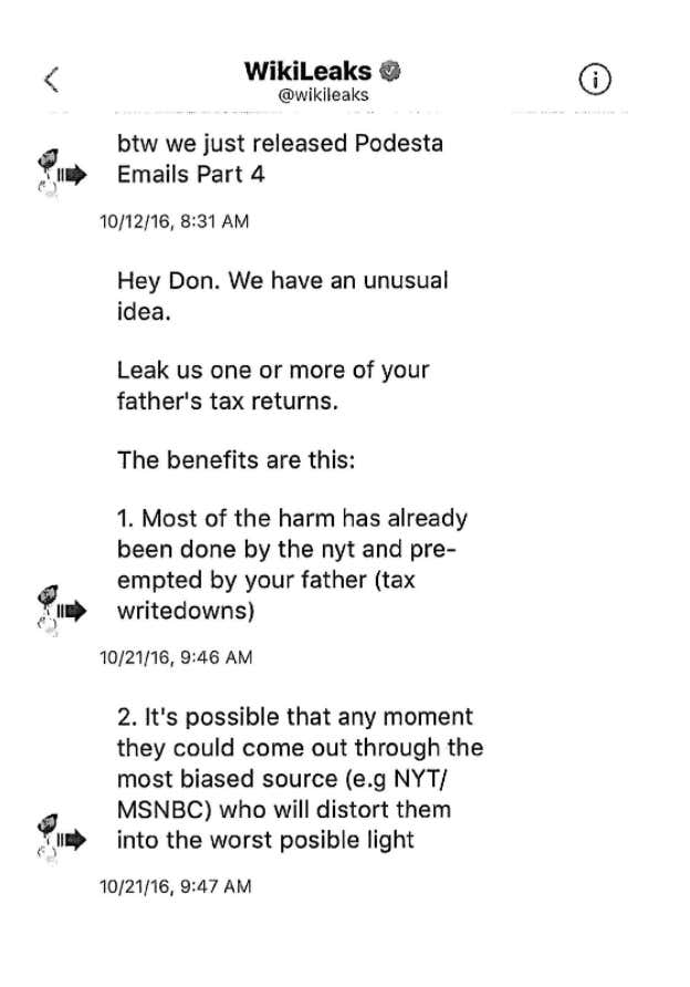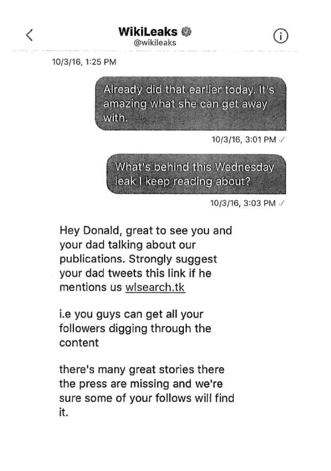 Donald Trump Jr. Publishes DM's With WikiLeaks From During The Election